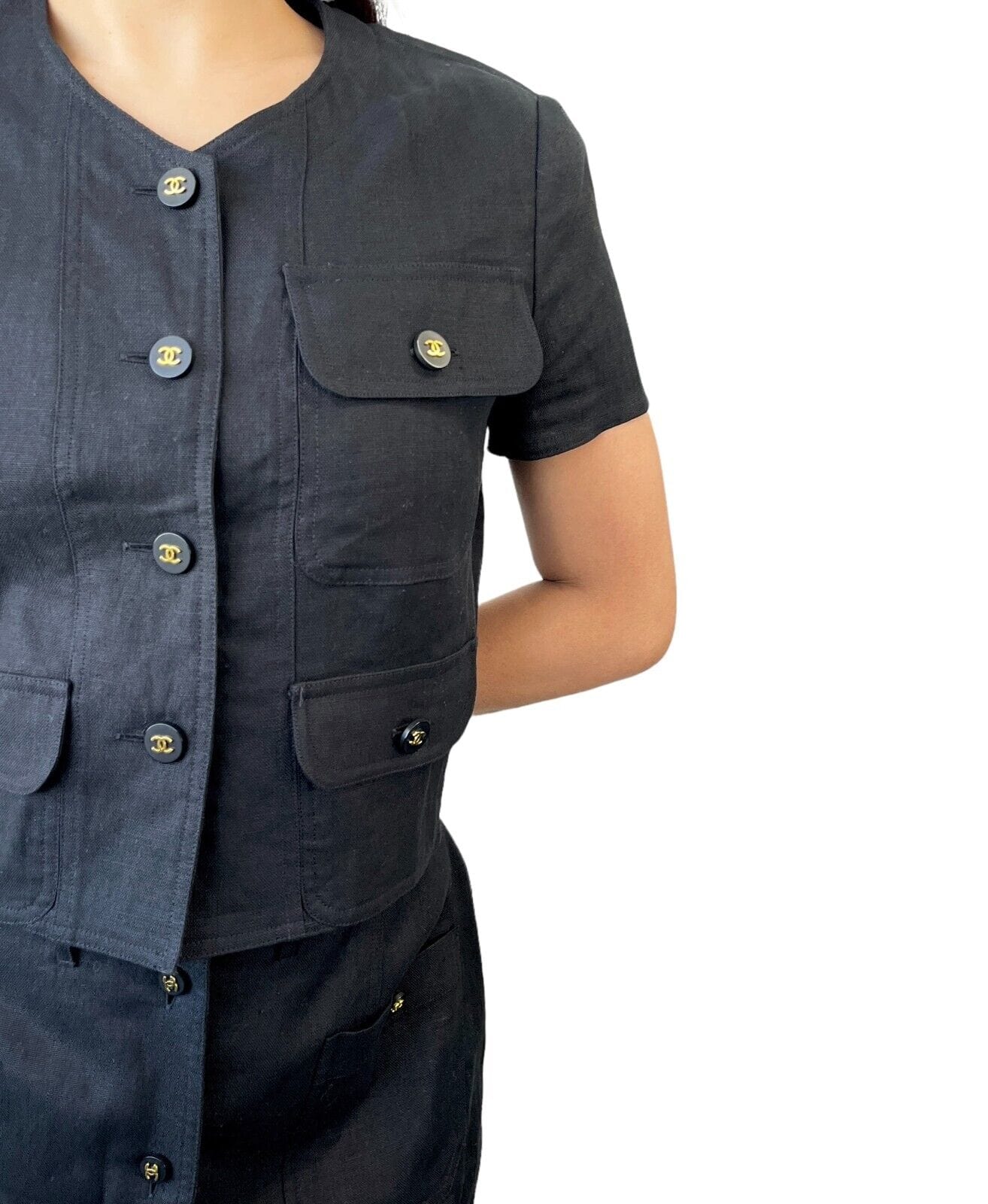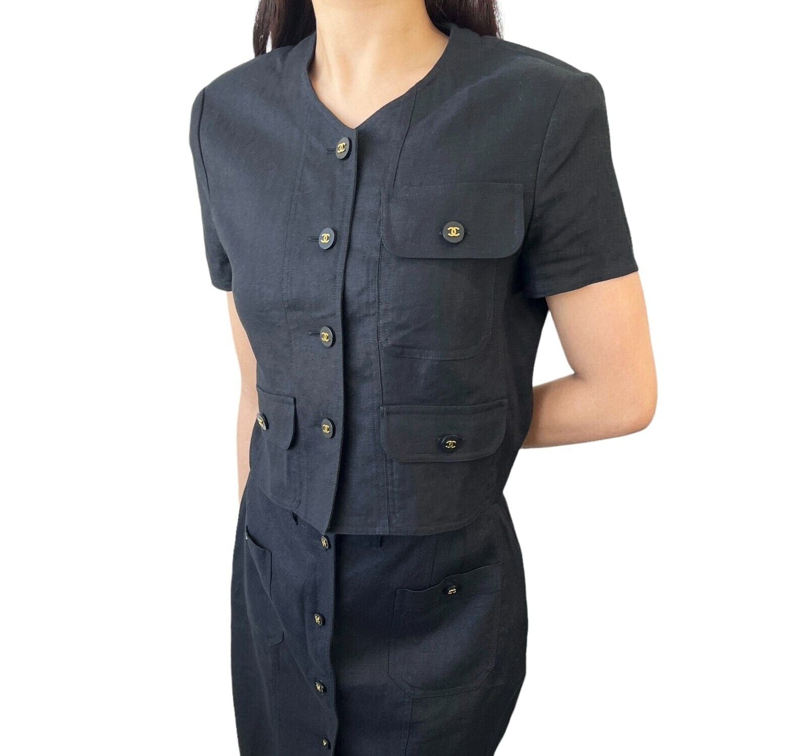 Shop this beautiful Chanel 97P CC Buttons Skirt Black #42 at Luxury Promise today!