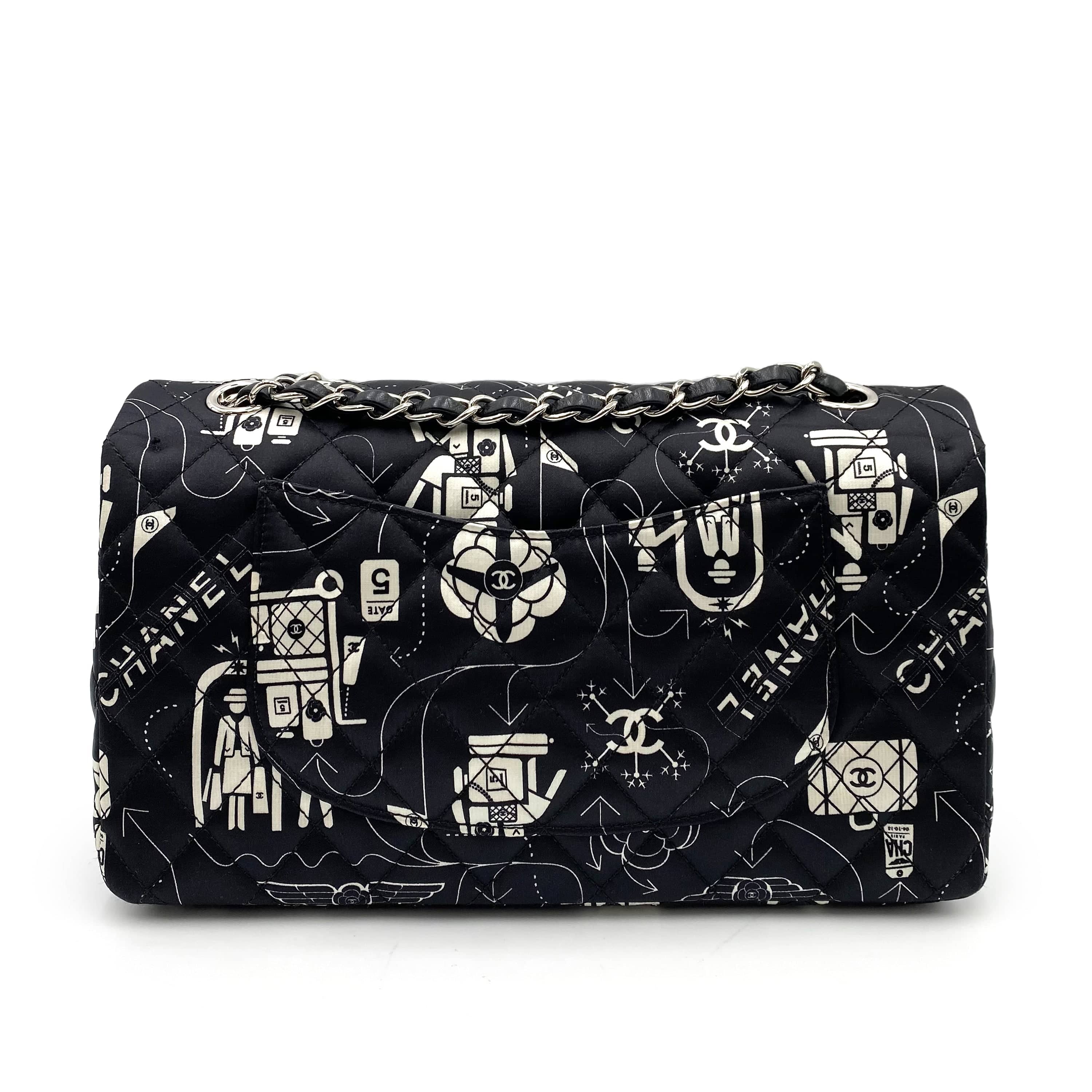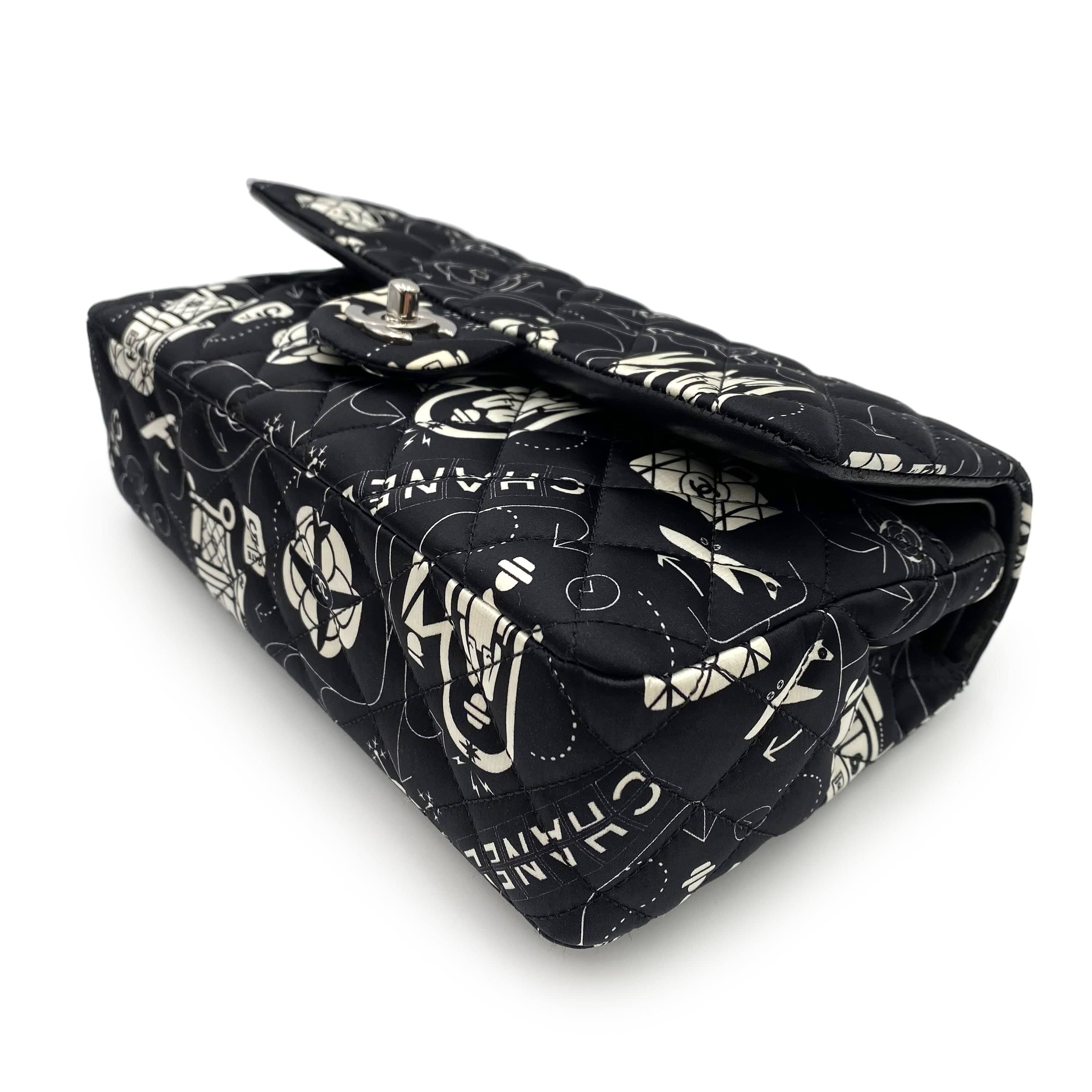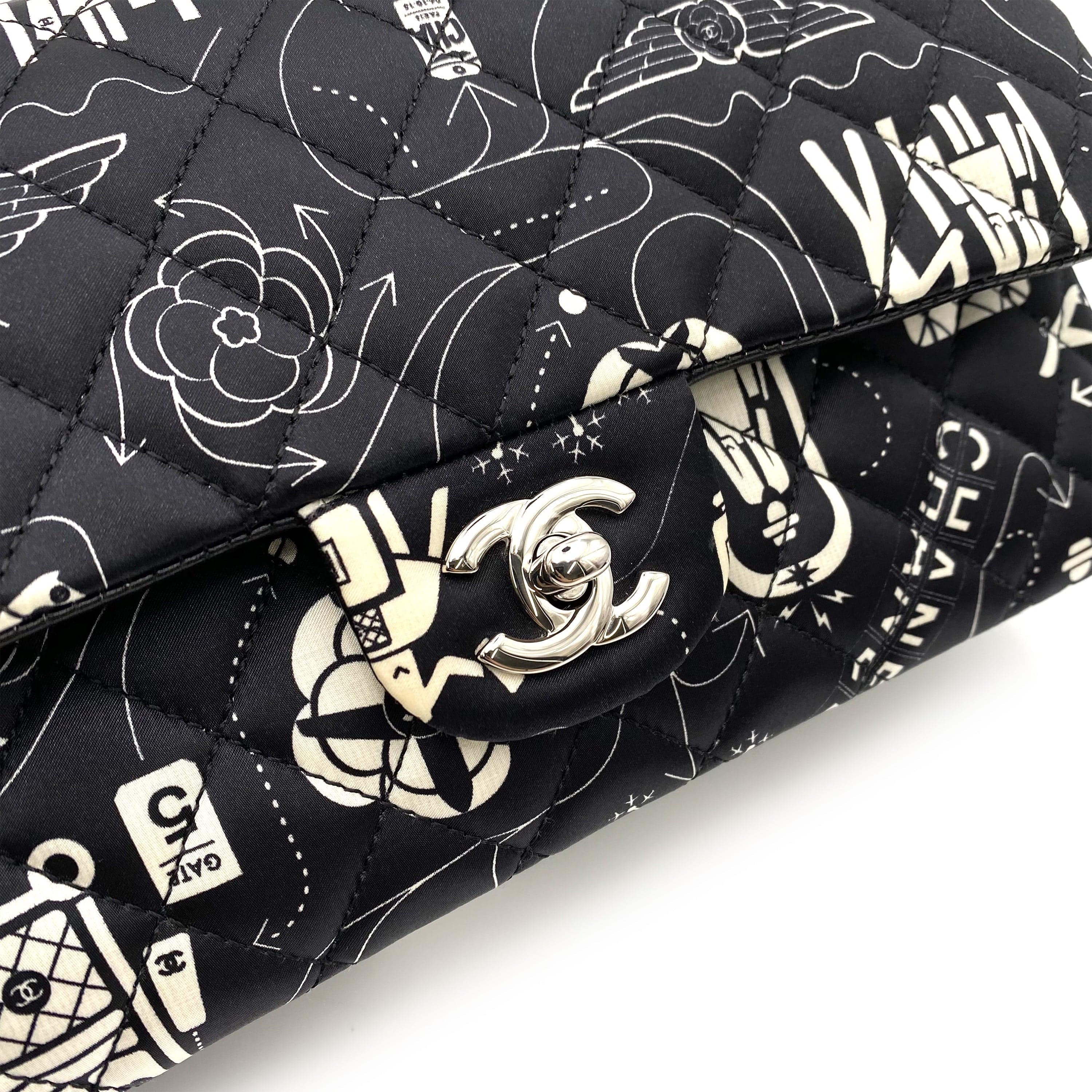 CHANEL AIRLINE CLASSIC FLAP MEDIUM CHAIN SHOULDER BAG BLACK WHITE SATIN 90237321