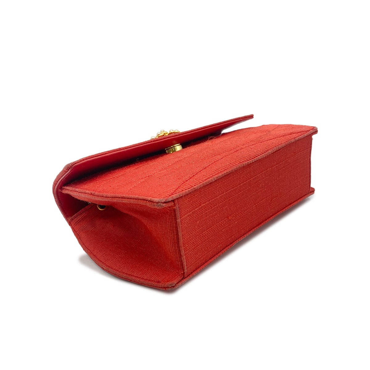 CHANEL CHAIN SHOULDER BAG FAKE PEARL RED FABRIC 90268198