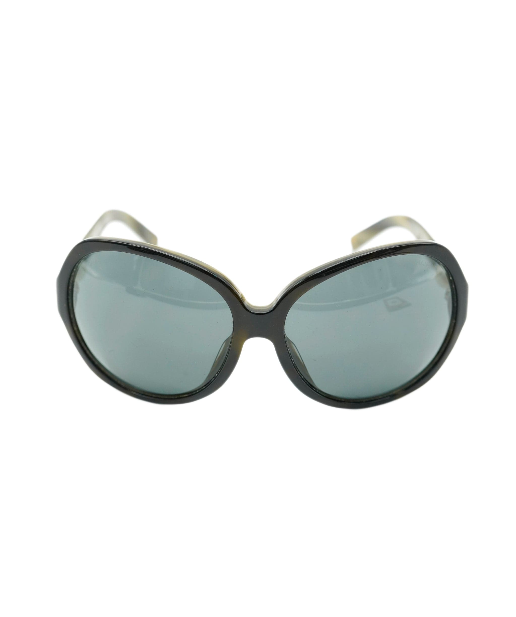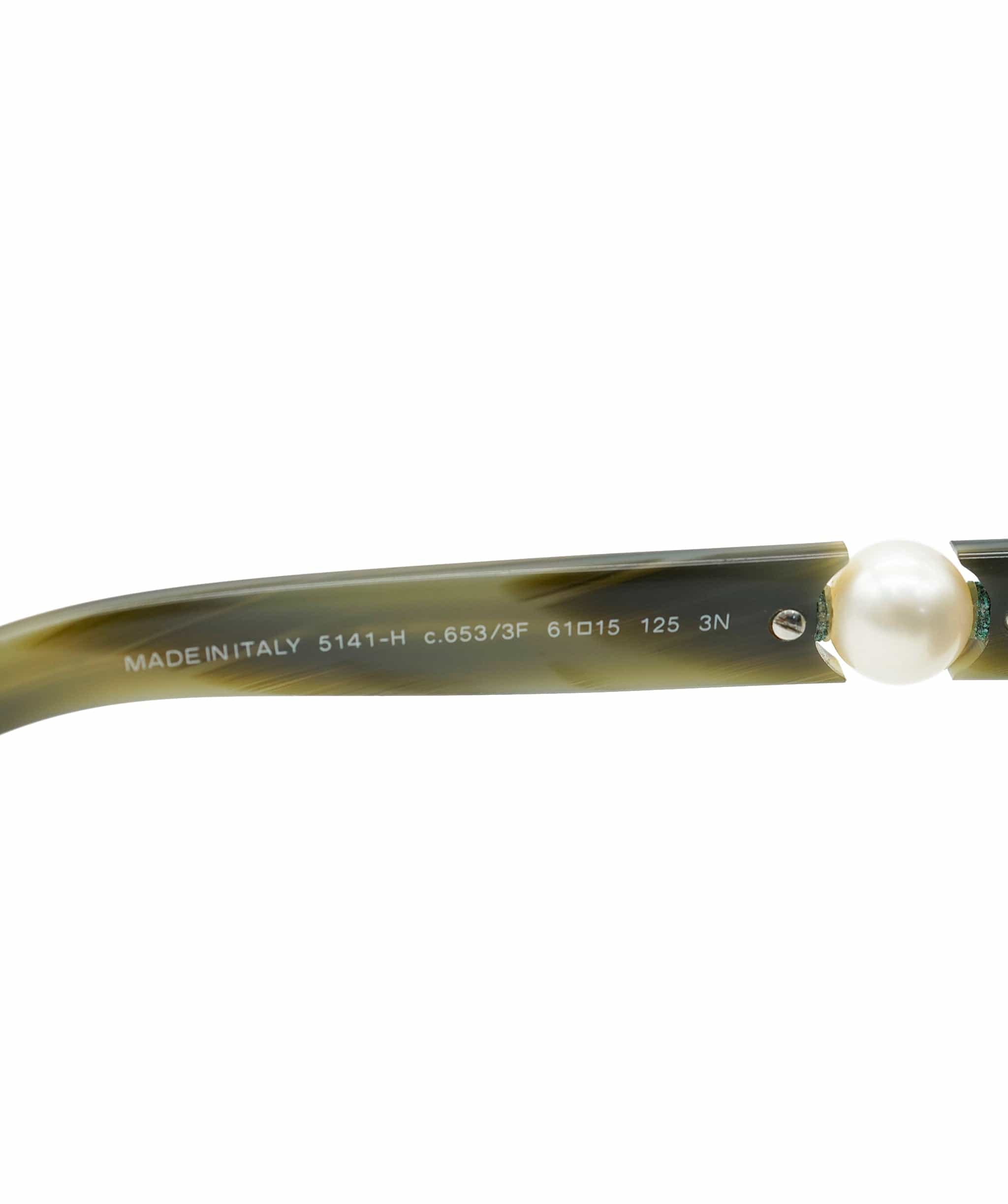 Description: Classic Chanel black tortoiseshell sunglasses featuring pearl detailing to either side. Overall good condition with minimal signs of wear throughout.