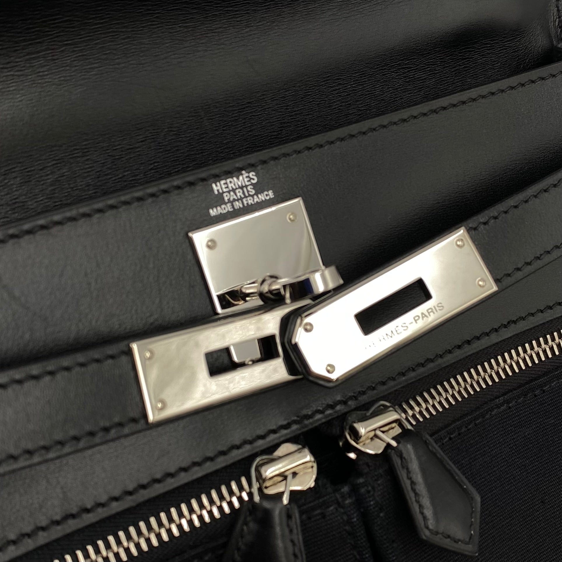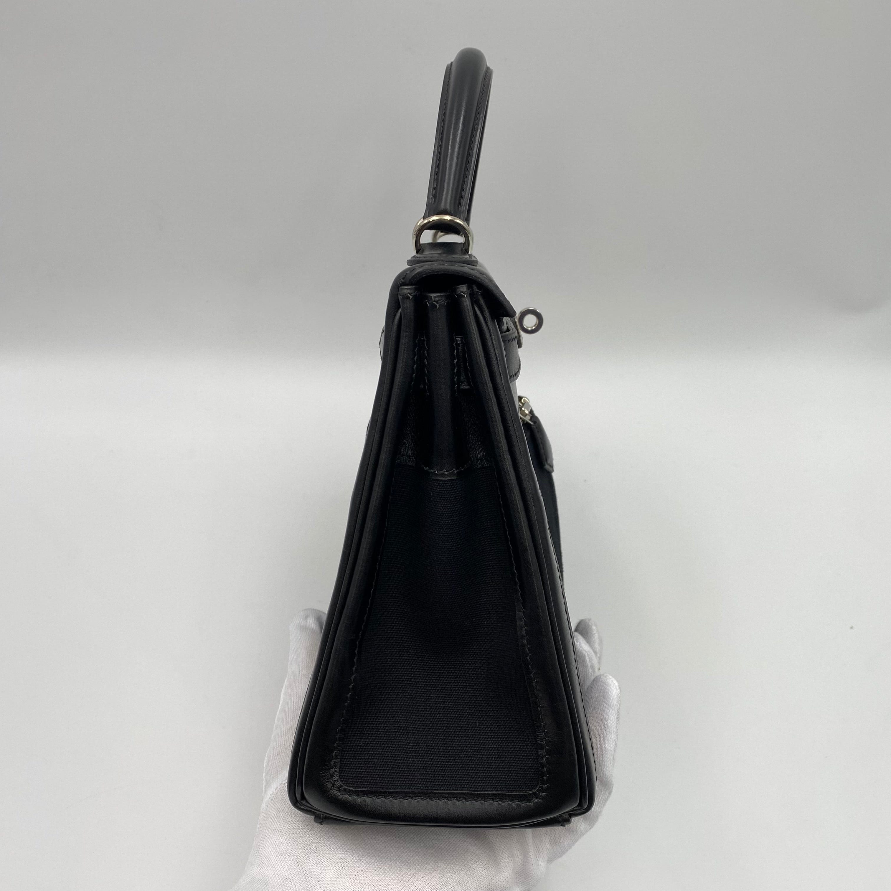 Hermes Vintage Kelly Lakis 28 Black Boxcalf / Toile PHW #J 90224703