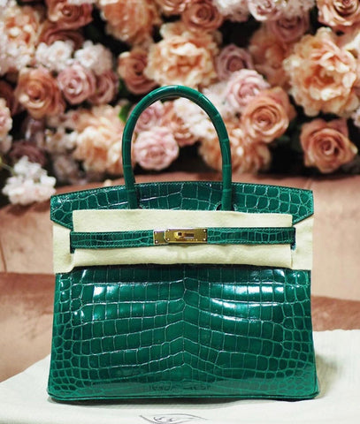 Hermès Birkin 30cm in Croc Vert Emerald with gold hardware. Courtesy of Luxury Promise