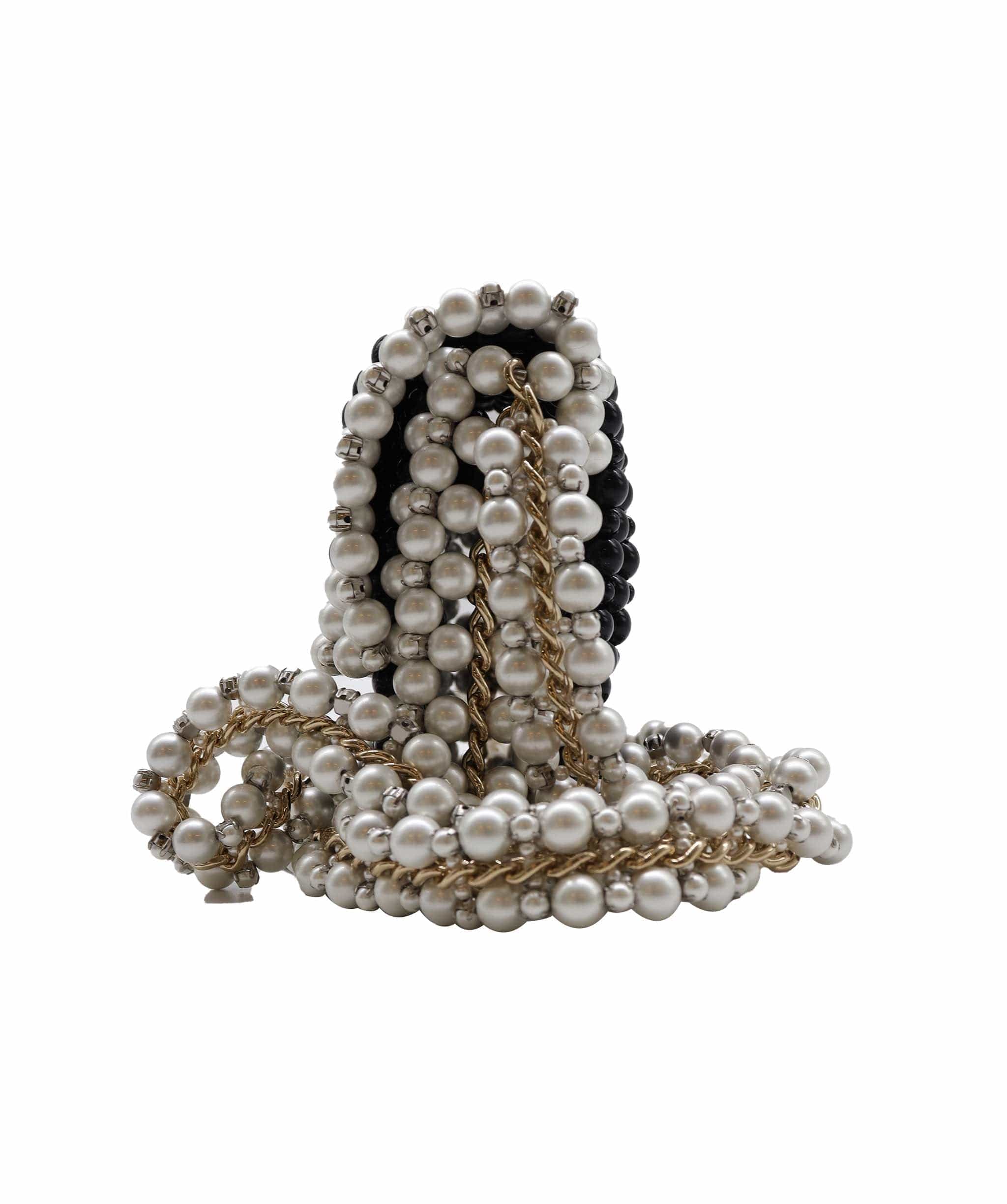 Chanel Chanel Caged Pearl Minaudiere Black White - DXBS2525Chanel Chanel Caged Pearl Minaudiere Black White - DXBS2525