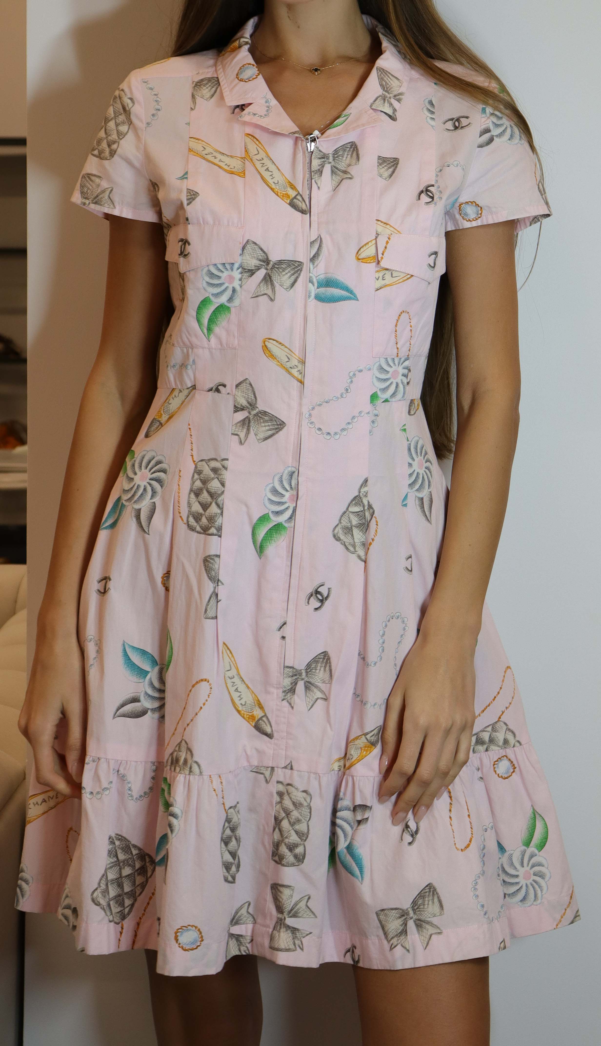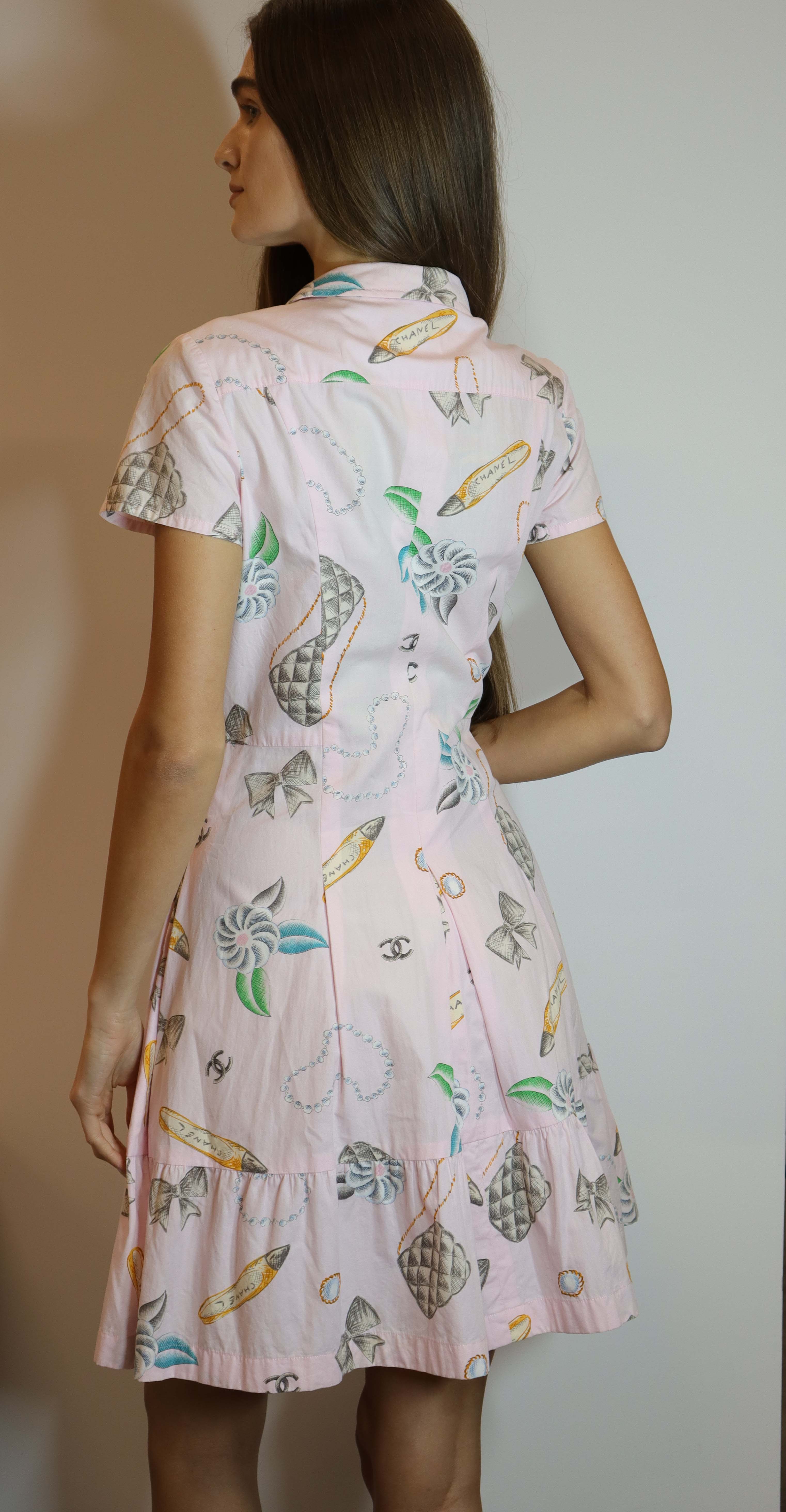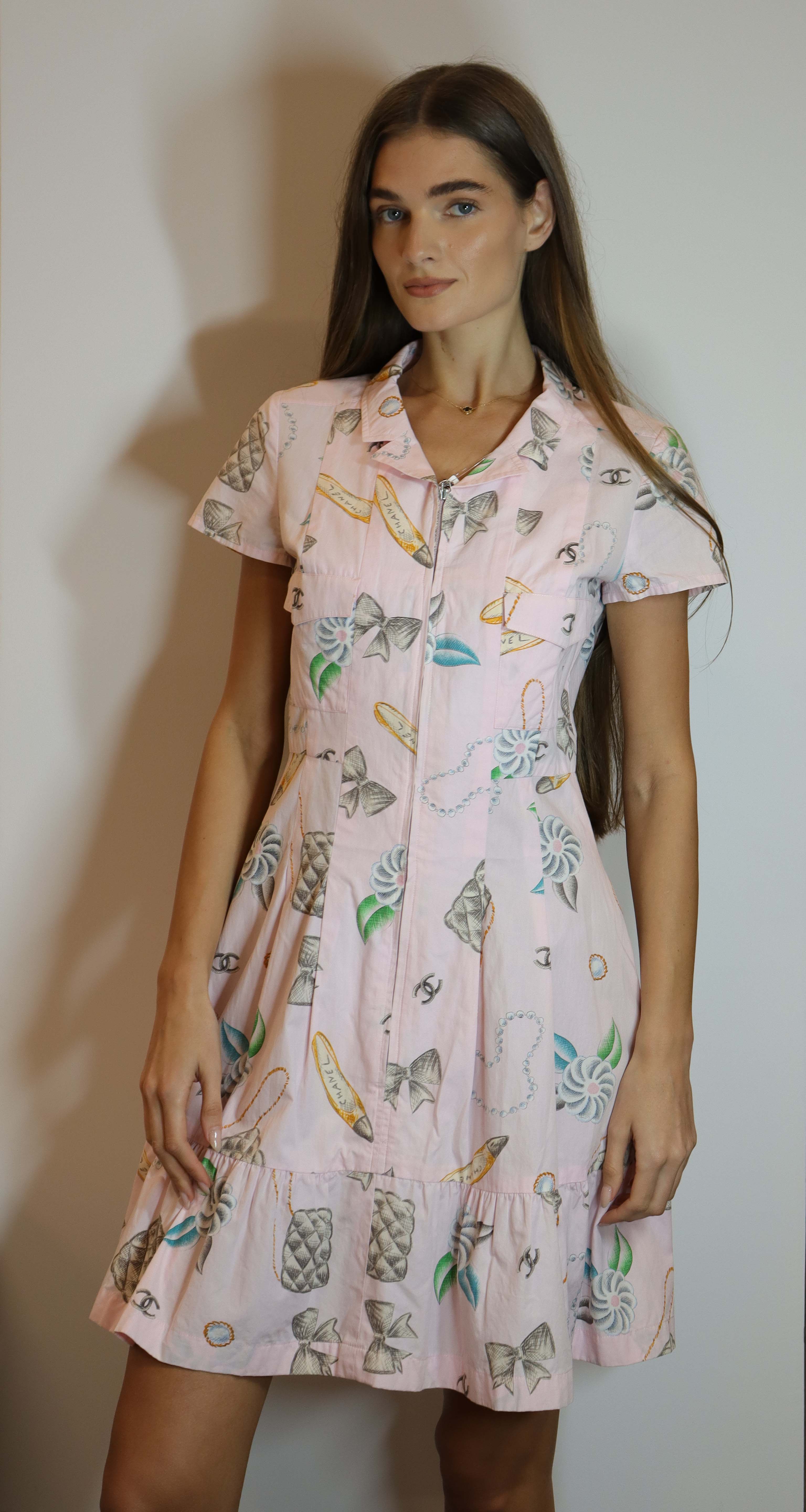 Chanel 1996 logo short sleeve pink cotton dress.
