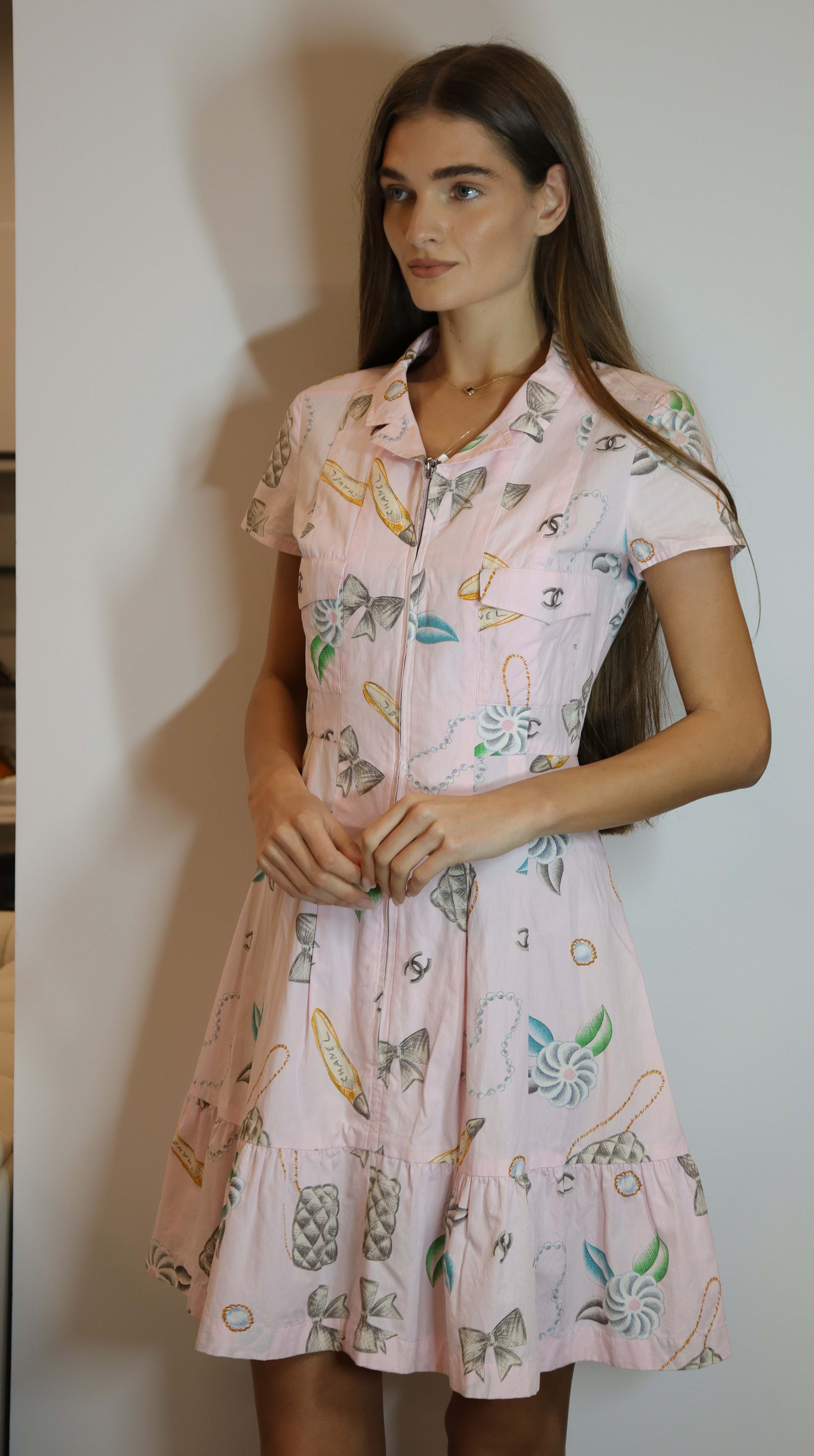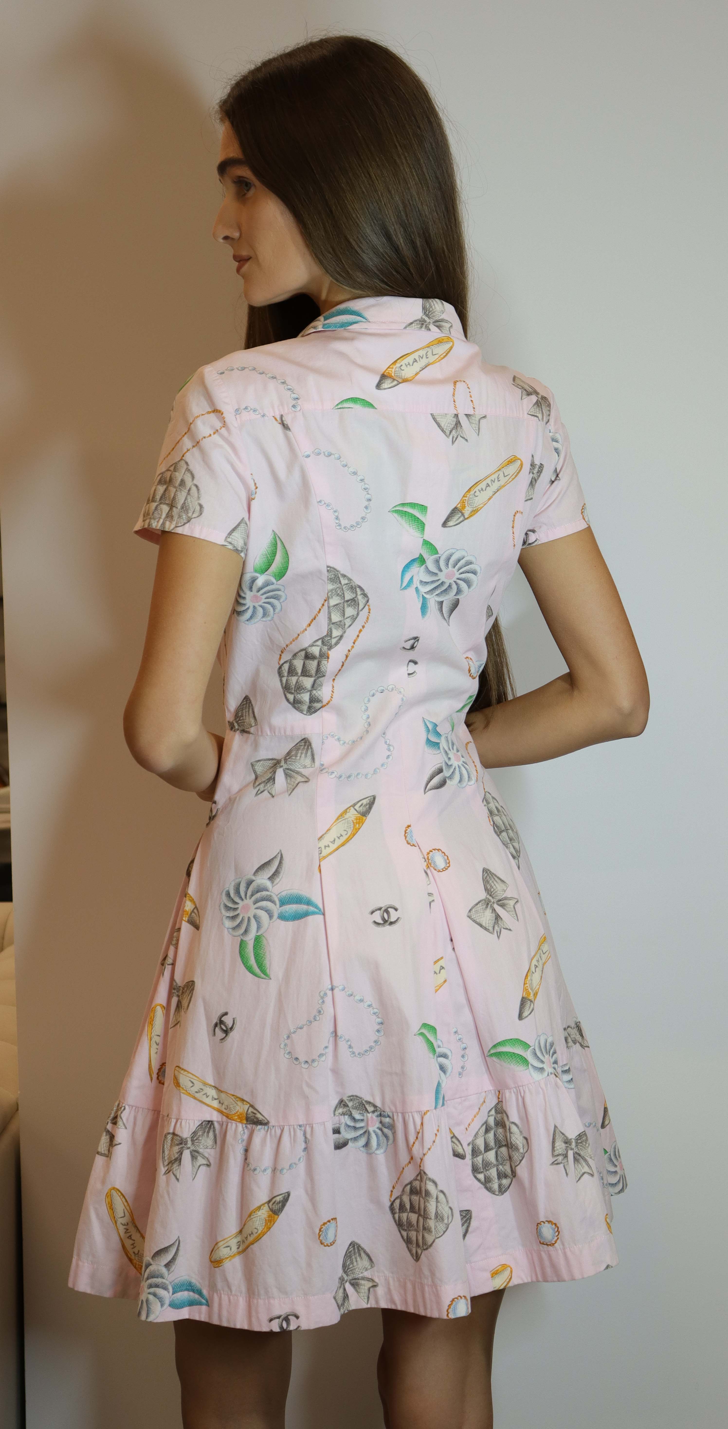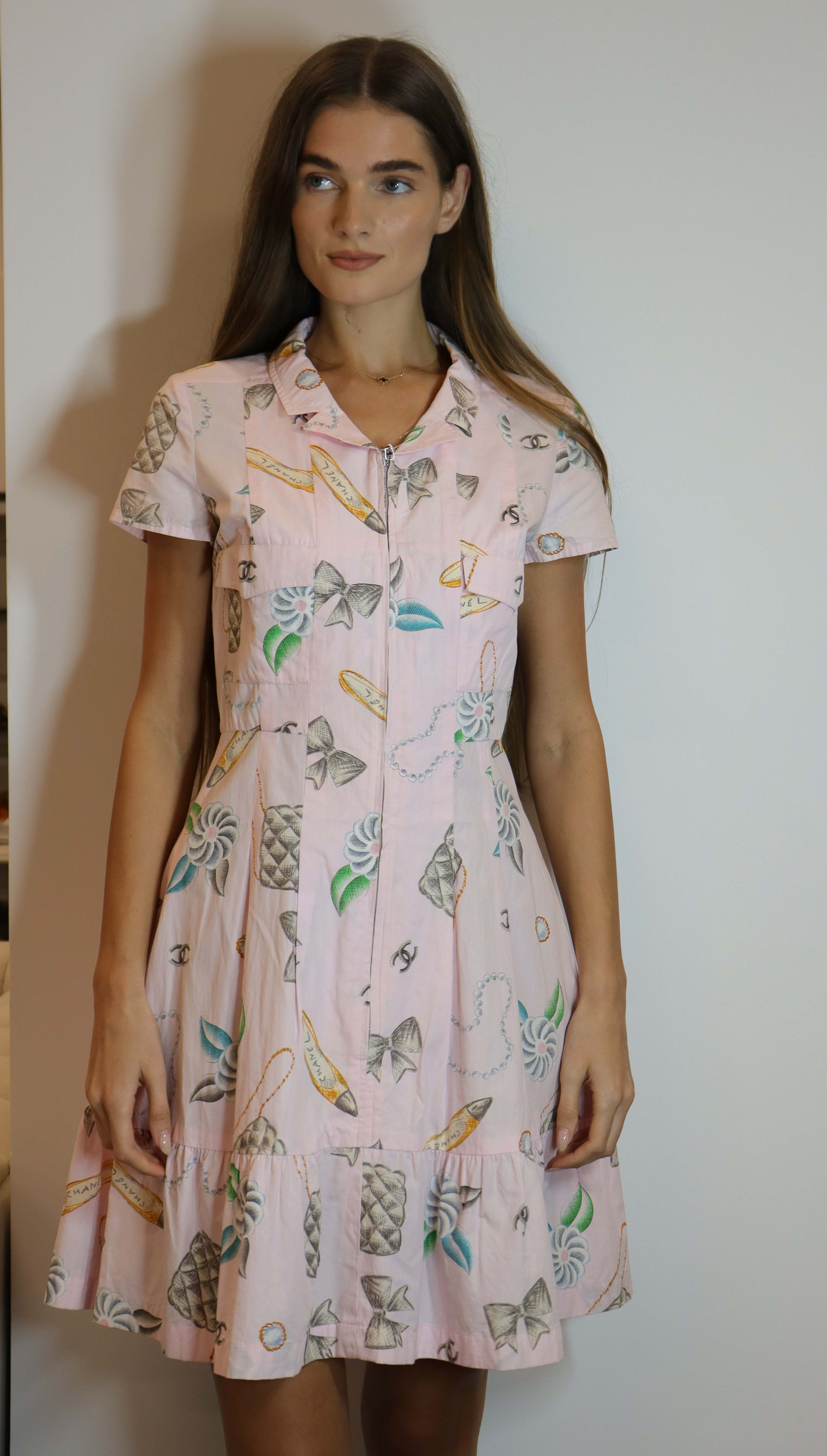 Chanel 1996 logo short sleeve pink cotton dress.