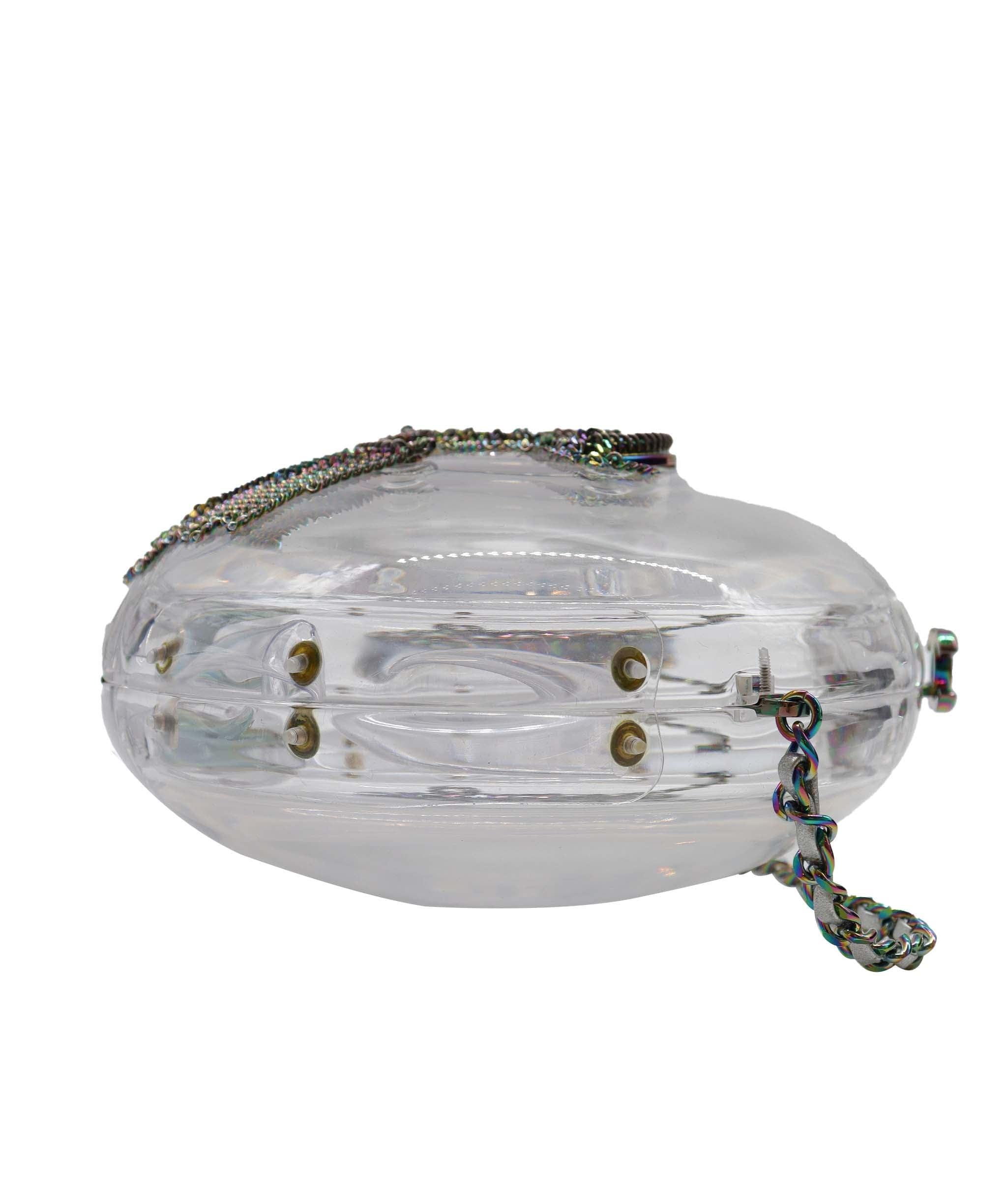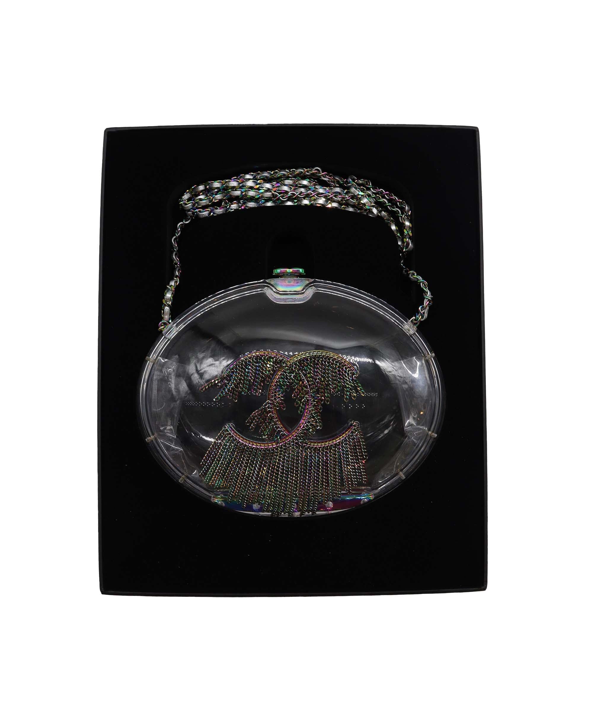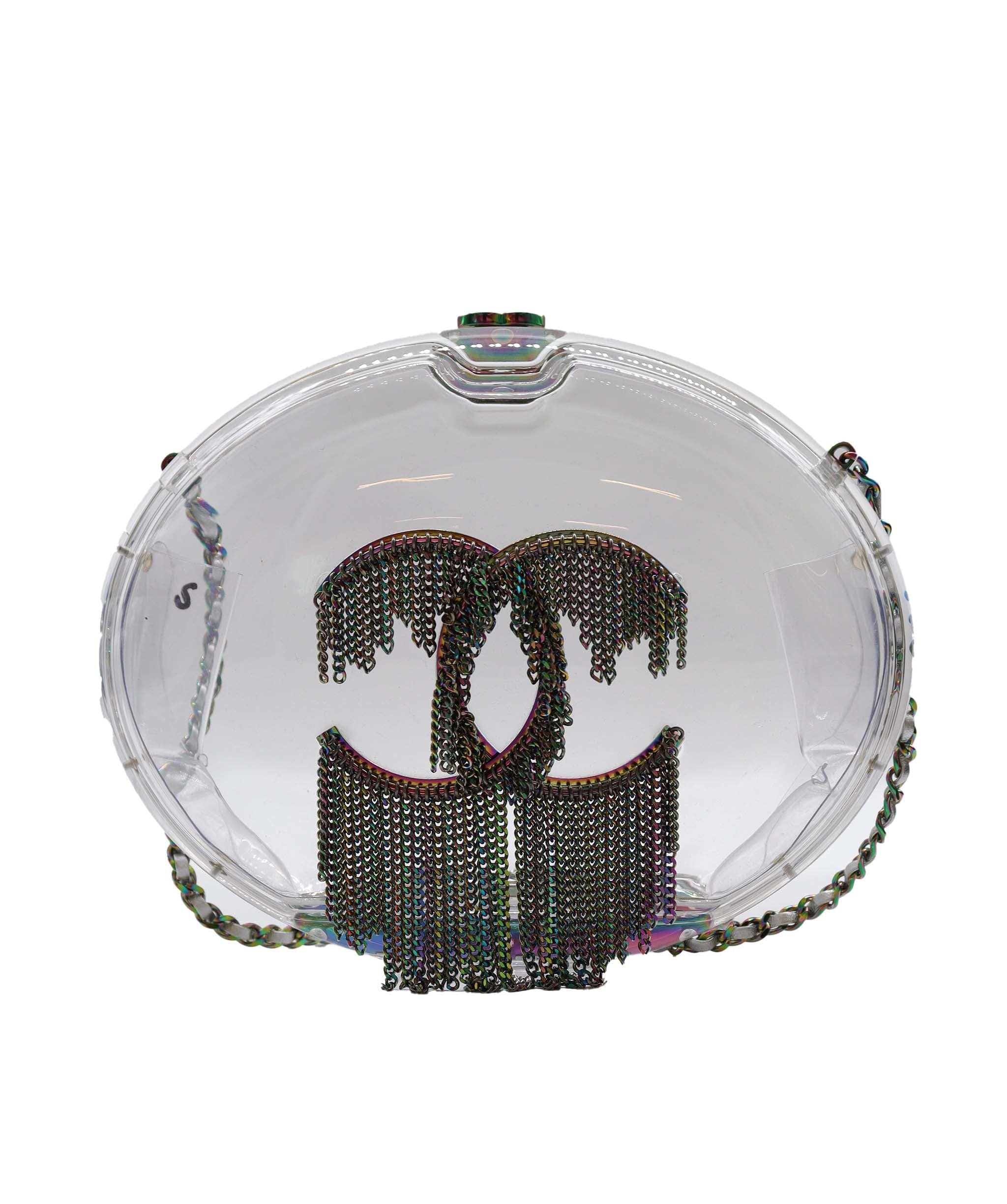 2018 CHANEL Plexiglass Iridescent Chain Fringe CC Clutch