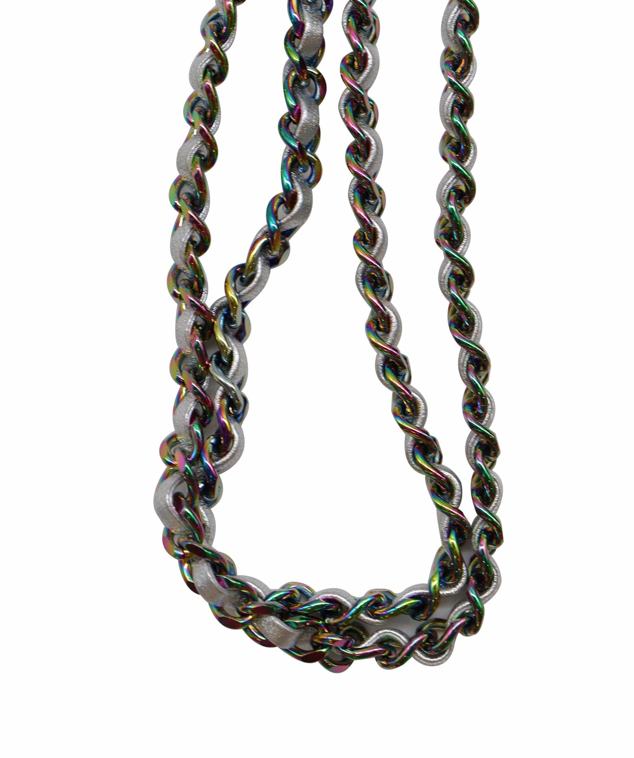 Description: Chanel 2018 CC clear Acrylic shoulder bag is crafted from high-quality clear acrylic with a unique oval shape and eye-catching iridescent rainbow chain fringe details. The chain shoulder strap adds a touch of luxury, while the push lock fastening at the front keeps your belongings secure.
