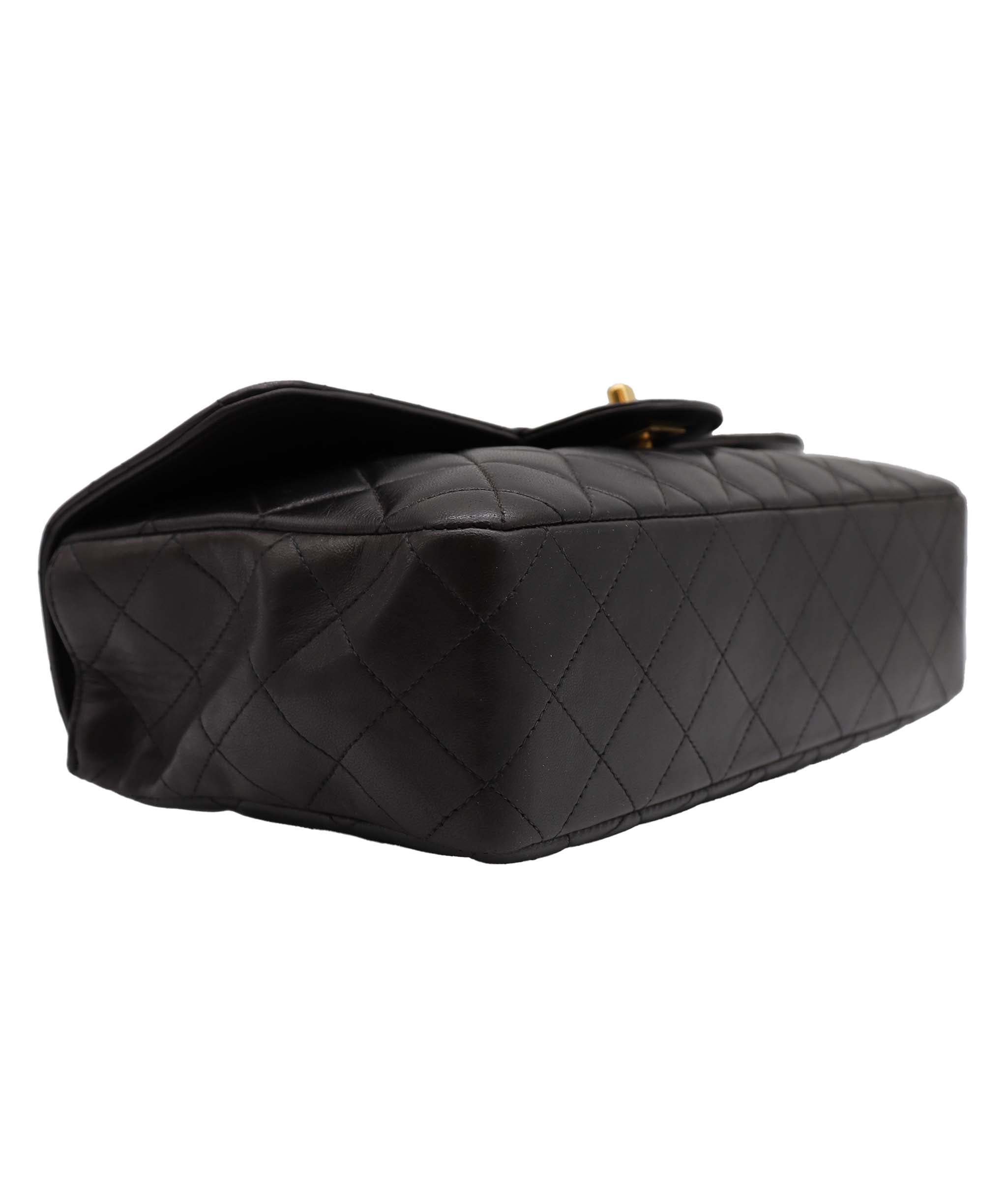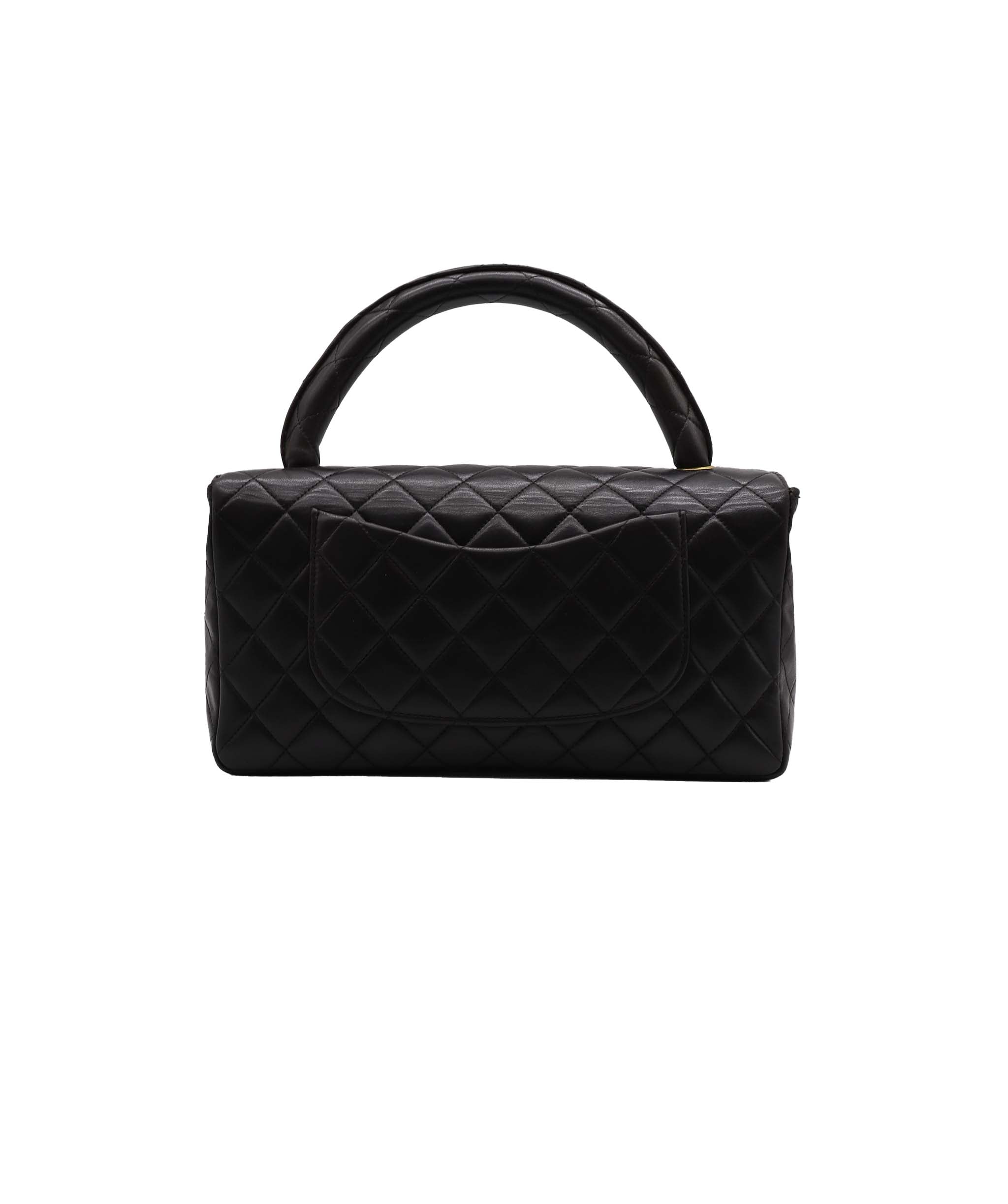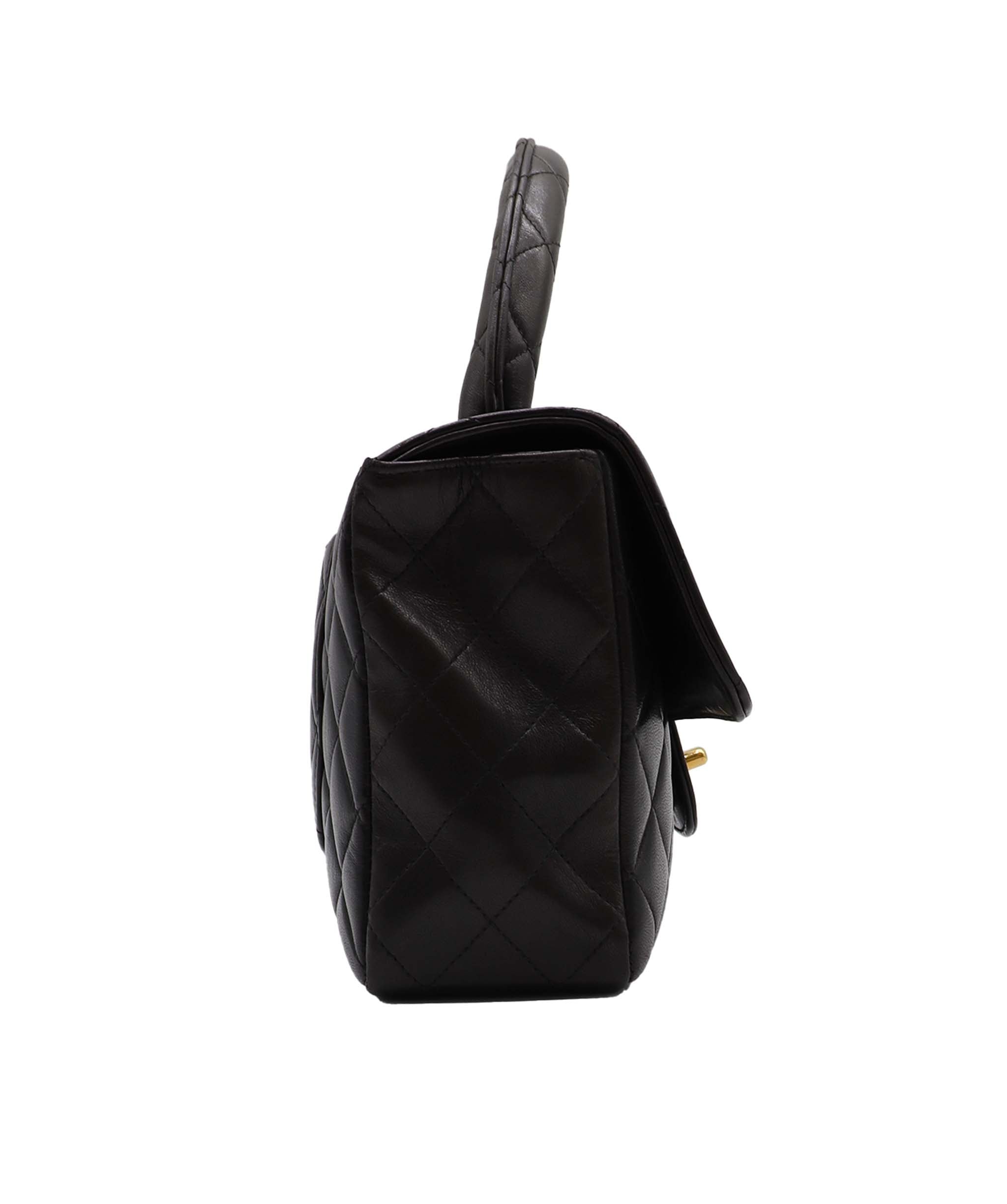 Description: This Chanel Top Handle Flapbag in Black Lambskin Leather, Gold Hardware, is in excellent condition.