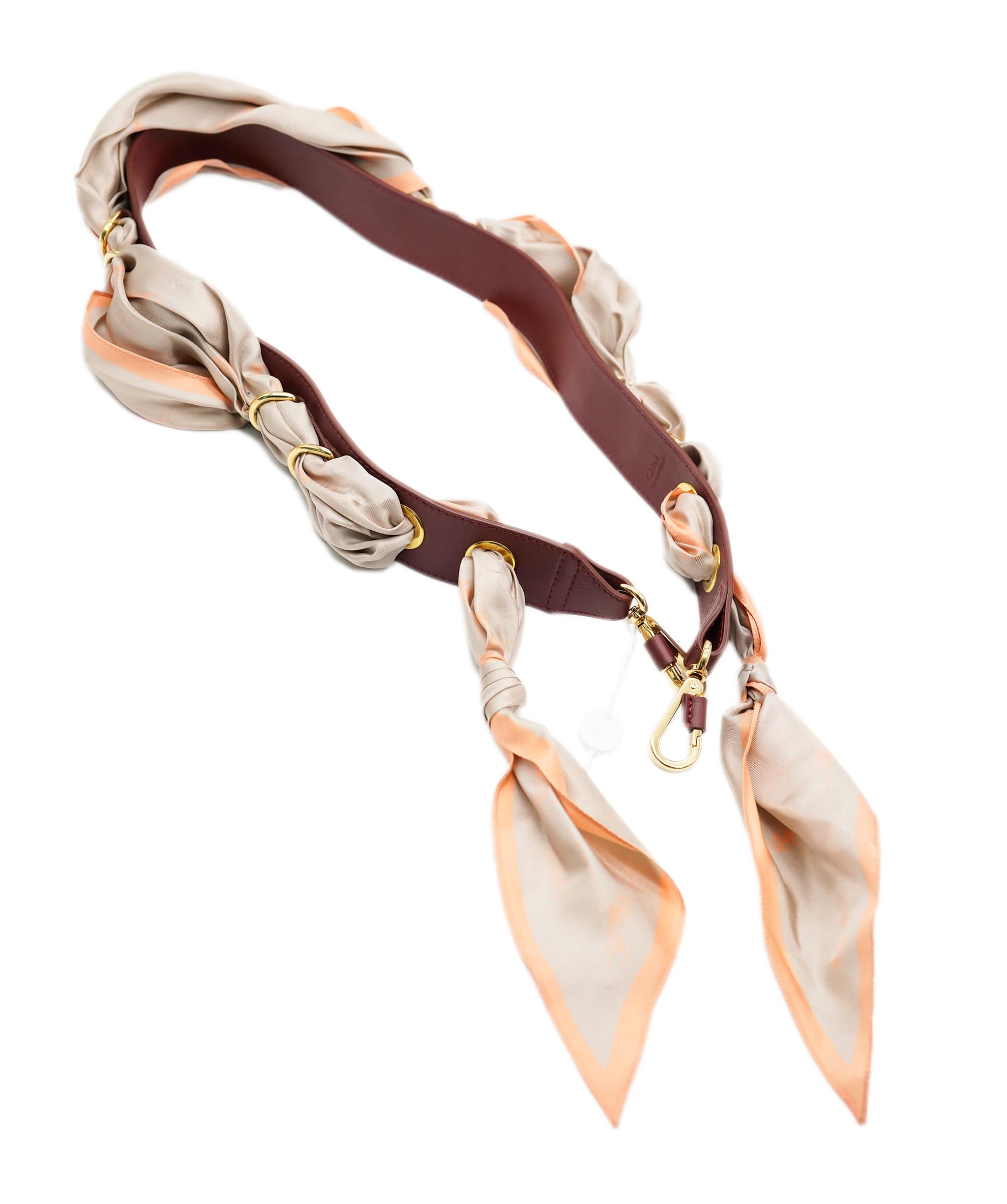 Chloé Burgundy Shoulder Strap with Beige Silk Twilly