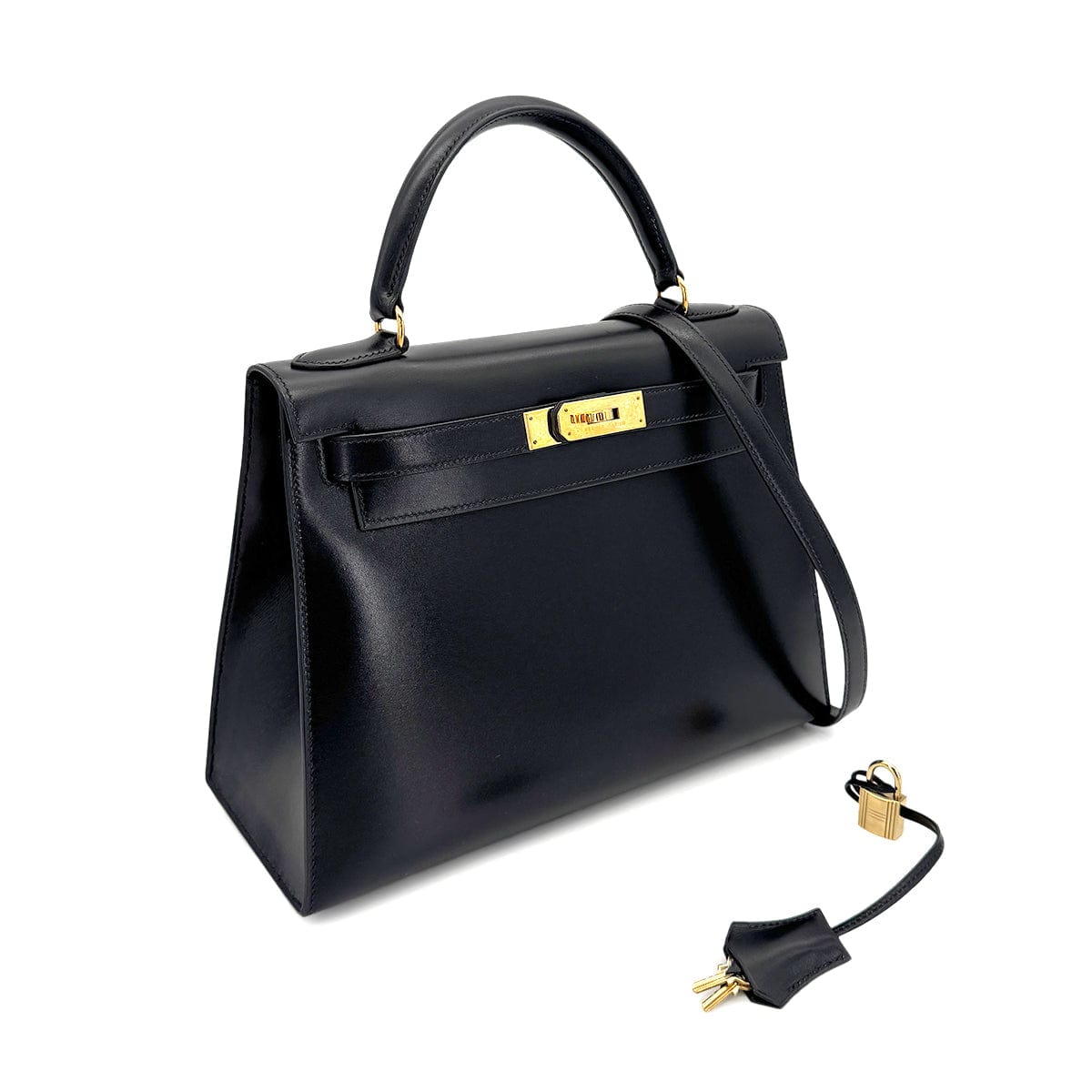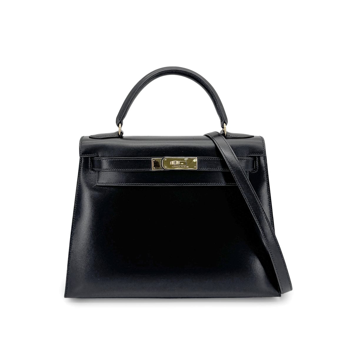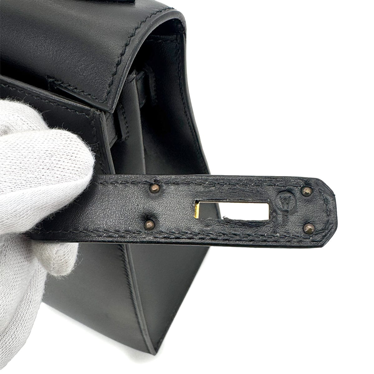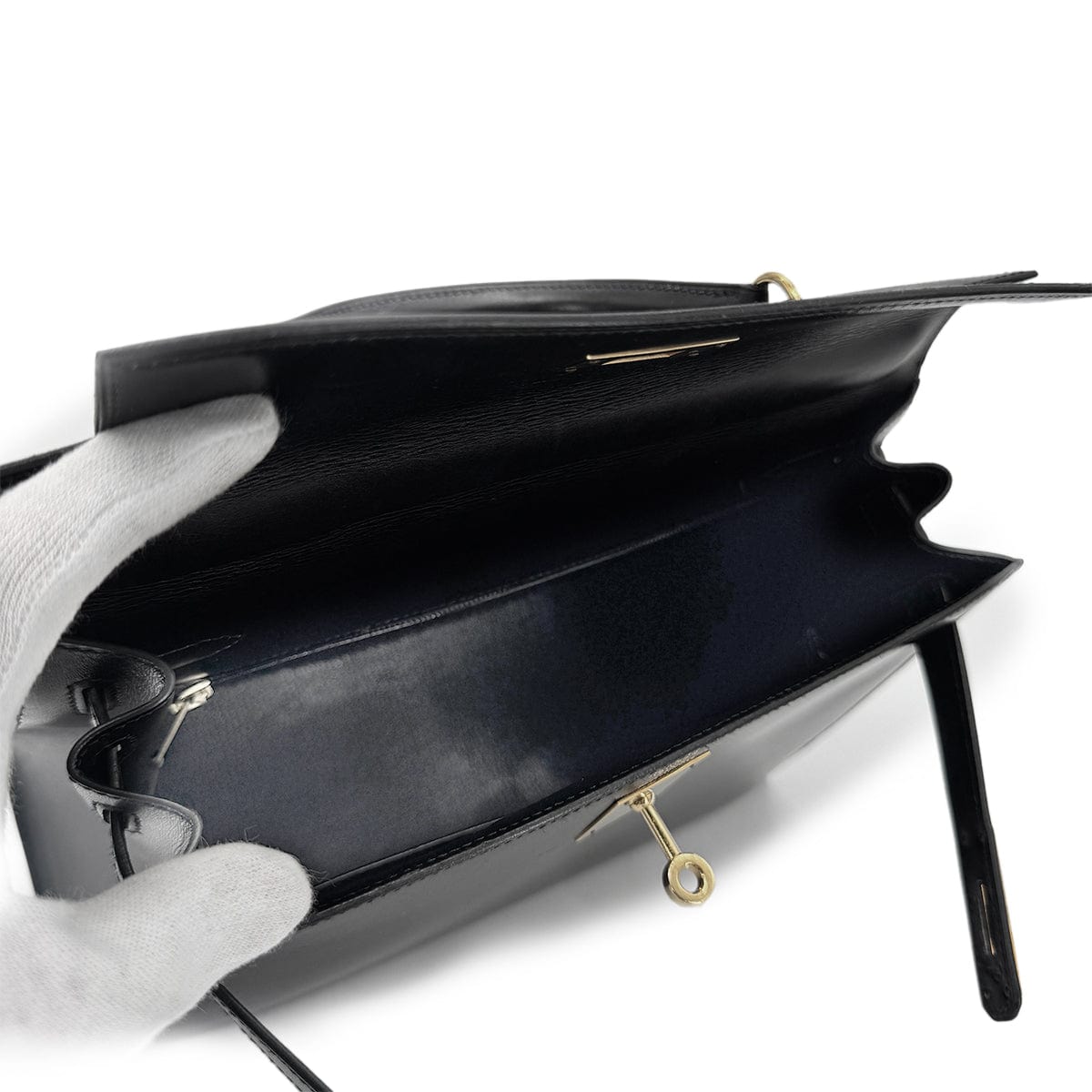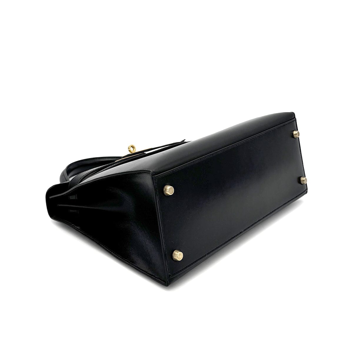 HERMES KELLY 28 SELLIER BLACK BOXCALF HAND SHOULDER BAG 〇W GHW 90275884